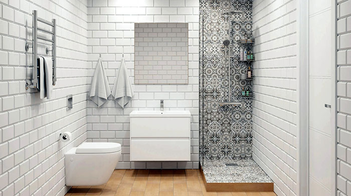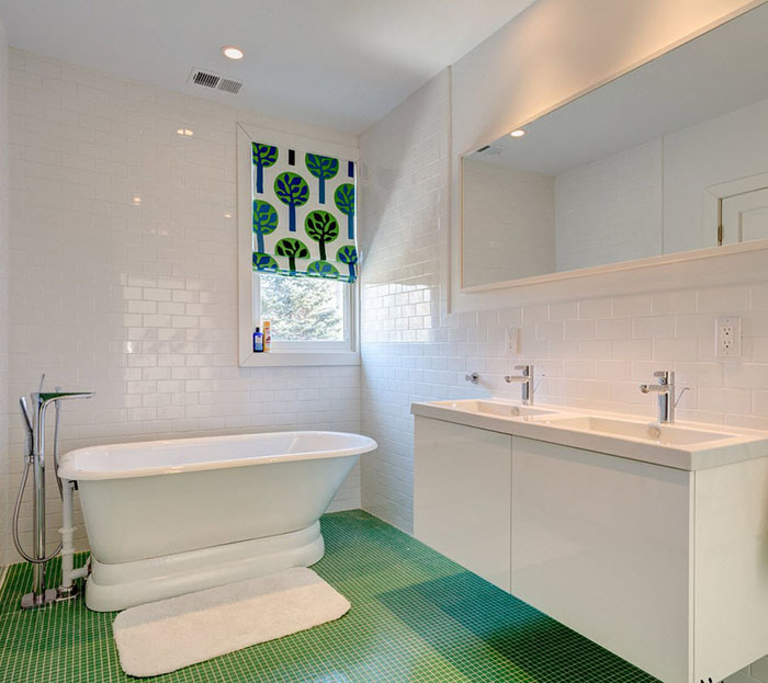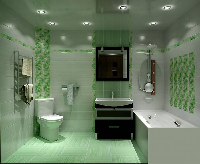 Шторы, полотенца и мочалки обычно белые. Если нужно сочетать пару-тройку цветов, то мелкие предметы интерьера должны быть контрастными.