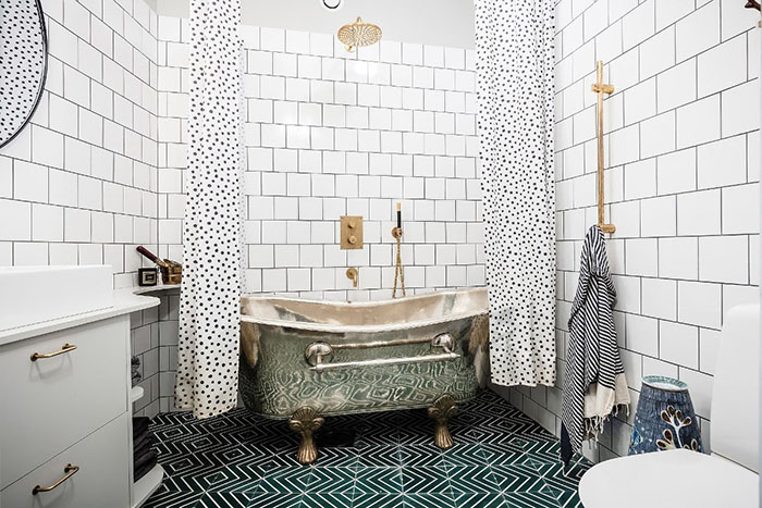 Имеет сходства с эко-стилем, но более вычурный и винтажный. Здесь используются состаренные шкафы, потертые коммуникации, ванны нестандартной формы. Бохо соединяет в себе детали нескольких стилей. В нем отлично соединяются марокканские мотивы с классическими молдингами. В обшивке лучше использовать дерево или камень, пол из плитки с восточным орнаментом или коротковорсный ковер.