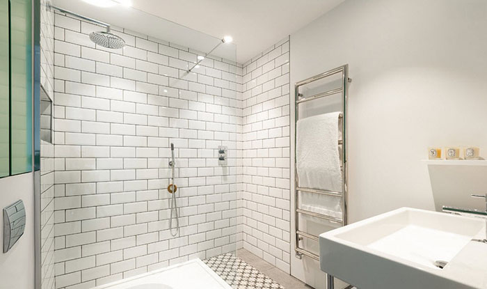 На полу часто выкладывают керамику. Но напольное покрытие должно контрастировать со стенами, чтобы не создавать чувство плоскости.