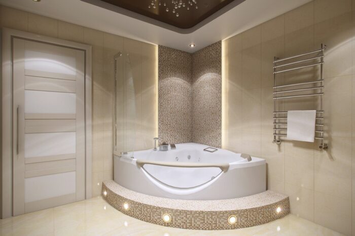 Где поставить угловую ванну, чтобы она комфортно вписалась в дизайн