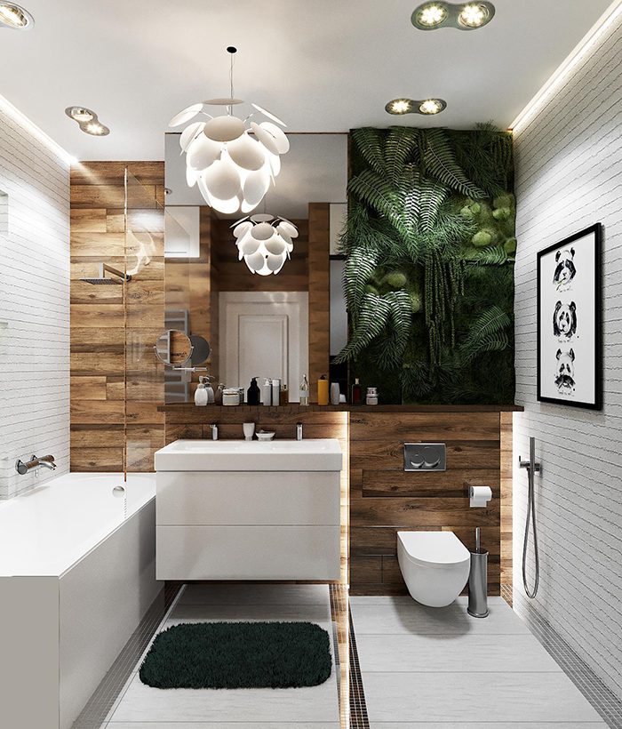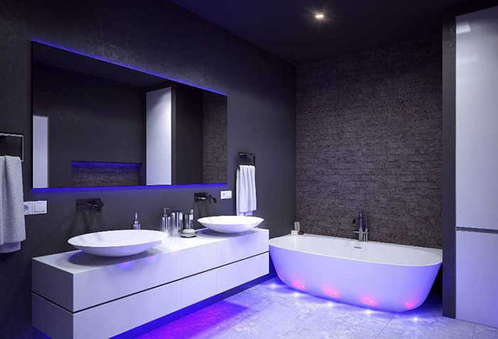 Светлые цвета визуально увеличивают комнату. Однако в основной массе санузлов нет естественного света. Следовательно, подобрав чистый белоснежный цвет, можно обрести эффект «больничной палаты». Разбавьте его стерильность контрастным тоном — лазурным, голубоватым, салатовым, красным».