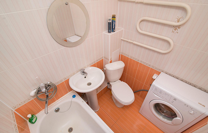 Бытовую технику выбирайте под масштабы определенной совмещенной ванной, предварительно обдумав подходящие варианты канализационных систем. Это даст возможность предельно качественно обработать либо перепроектировать санузел.