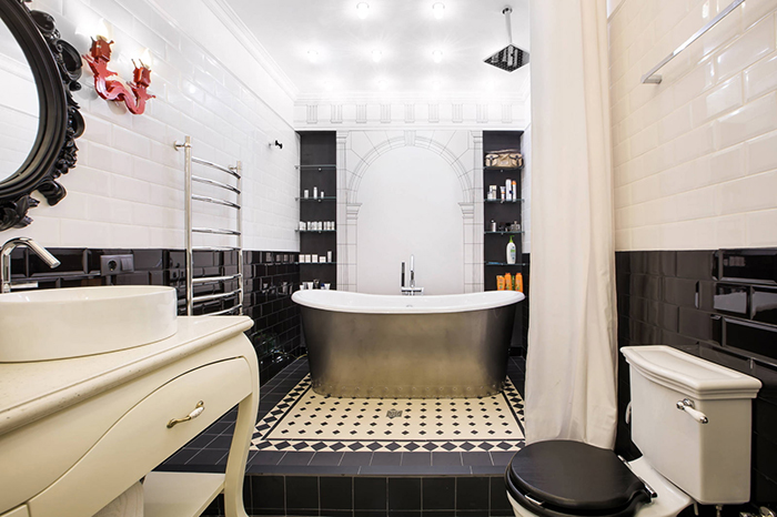 Оформляя ванную комнату в таком стиле, вы можете дать свободу своему воображению. Для дизайна вы можете использовать не только новейшие материалы, но и прежние компоненты декора.