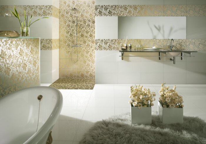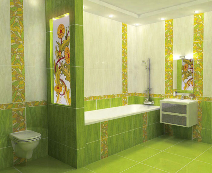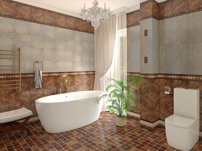 Существует множество вариантов раскладки плитки. Изделие может быть выполнено в разных цветовых решениях. В результате получается неимоверно привлекательный дизайн ванной комнаты. Находиться в таком помещении является сплошным удовольствием.