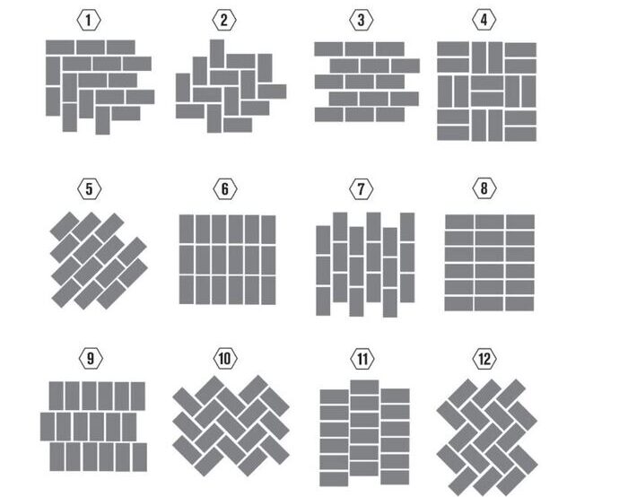 Монтируют плитку, соблюдая определенные правила. Для этого совмещают длинный и короткий элементы, чередуя очередность. На стеновых поверхностях подобную кладку применяют редко. Привлекательно смотрится подобное сочетание на небольшом участке.