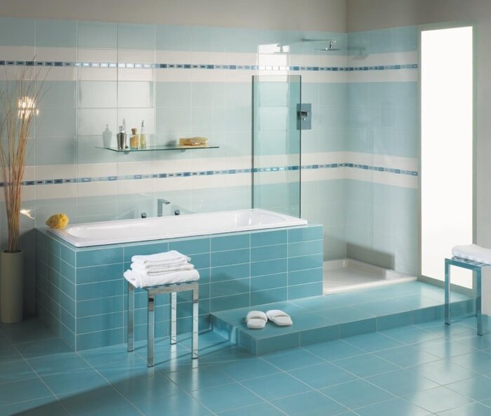 Популярным и достаточно простым способом является стандартная вариация. Выбор ее способствует существенной экономии временных и материальных затрат. Кафель в таком случае размещается в виде ровных рядов, стоящих рядом друг с другом. Также используют комбинацию материалов, имеющую вид гармонично разноцветной облицовки. В результате появляется возможность для значительного разнообразия дизайна.