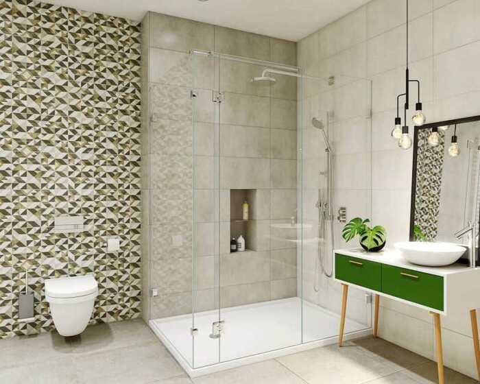 Подобный вид укладывания плитки способен стать украшением любого интерьера. Визуально скрывается большое количество дефектов и зрительно происходит расширение границ ванной комнаты. Чтобы оформить пространство, рекомендуется применение квадратных плиточных изделий, имеющих однотонное или узорчатое исполнение. При проведении облицовочных работ в большом количестве остаются излишки стройматериала.